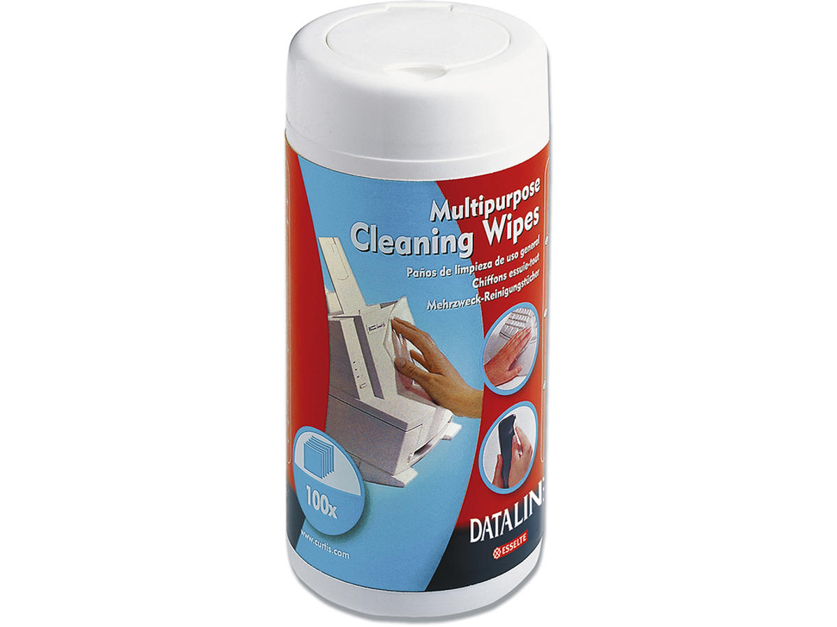 Stærke vådservietter til rengøring af overflader i plast på kontoret (computere, kopimaskiner, telefoner og borde). Indeholder 100 vådservietter. Hold dit skrivebord rent derhjemme eller på kontoret med Esselte Datalines serie af renseprodukter.