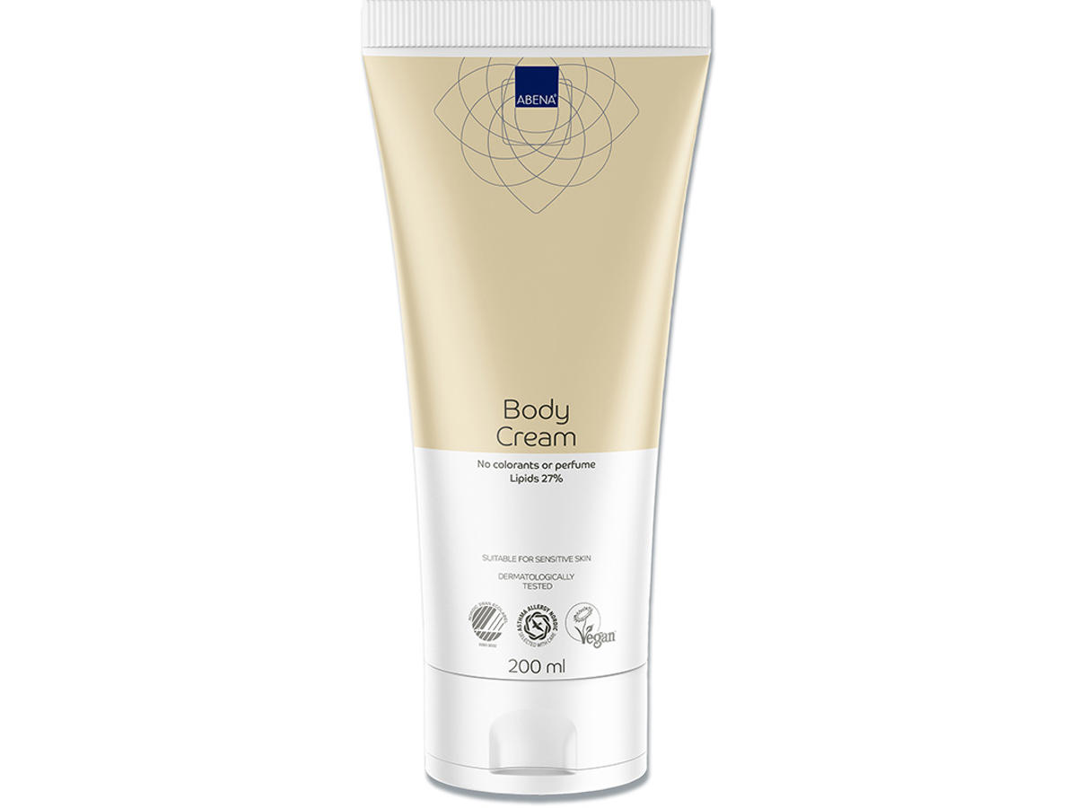 Abena's Hudplejecreme er fremstillet uden parfume og med 27% fedtindhold. Cremen indeholder Shea Butter, som er kendt for sine fugtgivende og plejende egenskaber. Dermed egner cremen sig særligt til tør og irriteret hud, samt sensitiv hud. Bemærk, at cremen ikke ophæver virkningen af klorhexidin.
