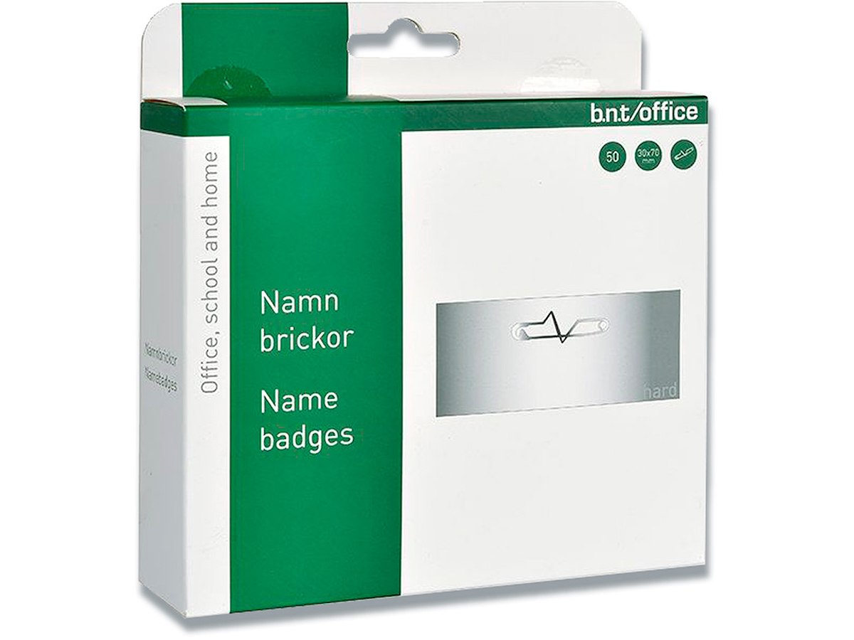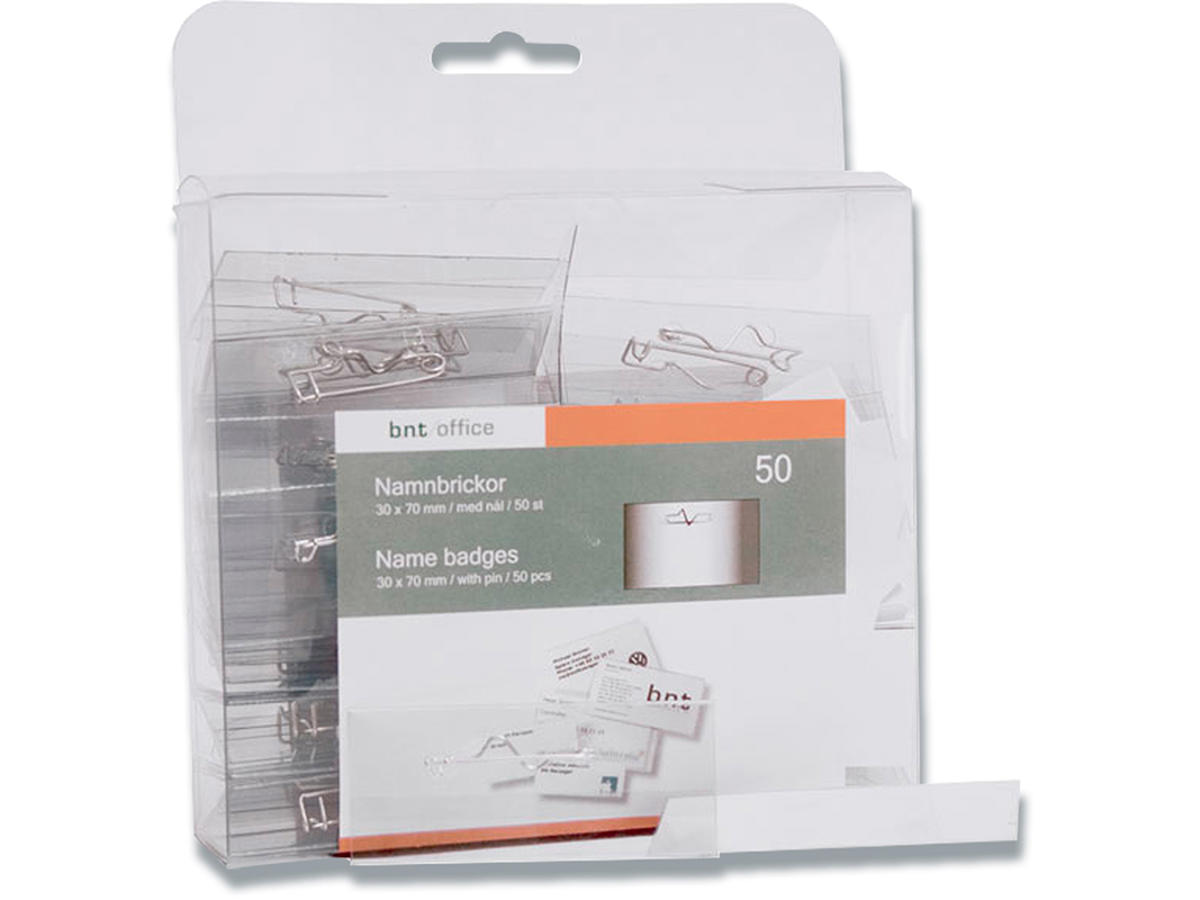 Navneskilt, Med sikkerhedsnål og indstik, 30x70 mm, 50 stk, BNT Office