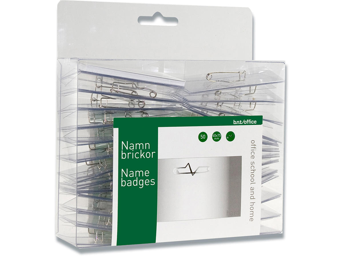 Navneskilt, Med sikkerhedsnål og indstik, 40x75 mm, 50 stk, BNT Office