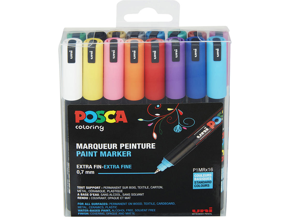 Paint marker, 0.7 mm, 16 assorterede farver, Ultra-fin spids, uni Posca PC-1MR