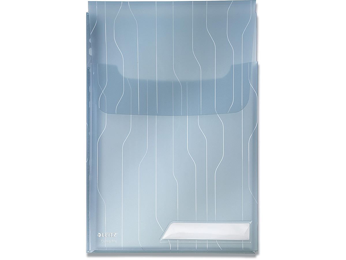 Fleksibel omslag og lomme med unik fold-ud hulkant. Den ekspanderende 20 mm fold gør lommen perfekt til store dokumenter og kataloger. Topflap for optimal beskyttelse af indhold. Attraktivt præget design på PP folien.