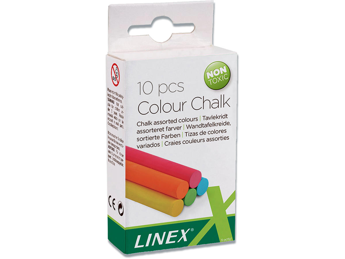 Tavlekridt, Runde, Farvede, 10 stk, Linex CCCHC