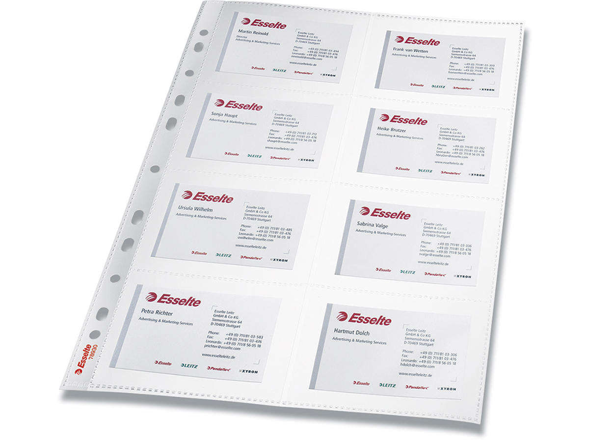 Lomme med 8 rum til visitkort. Multihulning giver nem opbevaring af dokumenter i brev- og ringordnere