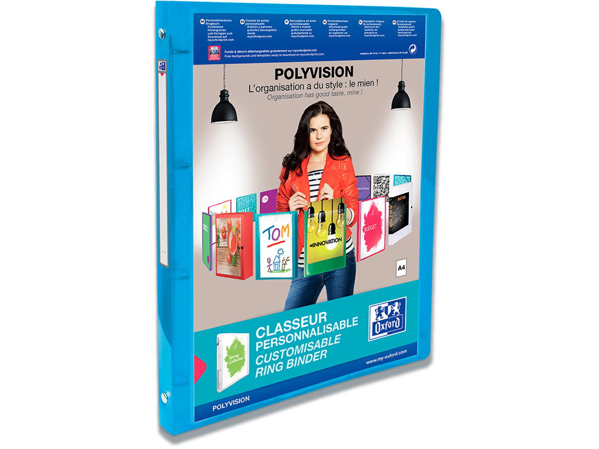 Ringbind, A4, 4 O-ringe, Ø15 mm, 2.0 cm, Transparent - Koboltblå, Oxford Polyvision Panorama