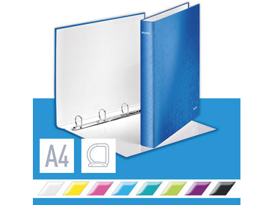 Ringbind, A4 Maxi, 4 D-ringe, Ø25 mm, 4.0 cm, Metallic blå-hvid, Leitz WOW Ringbind, A4 Maxi, 4 D-ringe, Ø25 mm, 4.0 cm, Metallic blå-hvid, Leitz WOW