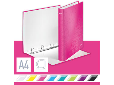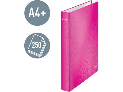 Ringbind, A4 Maxi, 2 D-ringe, Ø25 mm, 4.0 cm, Metallic pink, Leitz WOW Ringbind, A4 Maxi, 2 D-ringe, Ø25 mm, 4.0 cm, Metallic pink, Leitz WOW