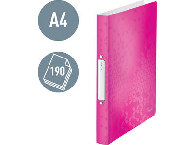 Ringbind, A4, 2 D-ringe, Ø25 mm, 3.2 cm, Metallic pink, Leitz WOW Ringbind, A4, 2 D-ringe, Ø25 mm, 3.2 cm, Metallic pink, Leitz WOW
