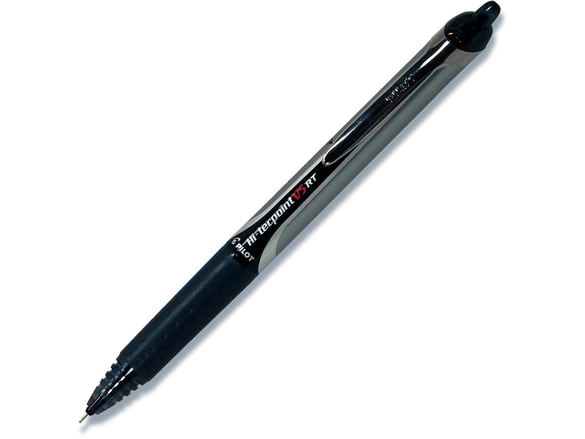 Rollerball pen, 0.5 mm, 0.25 mm, Sort, Pilot Hi-Tecpoint V5 RT Fine BX-V5RT-B