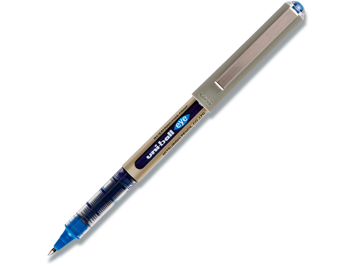 Med mulighed for at vælge utrolig mange forskellige farver, er denne pen blevet en af de mest solgte rollerpenne i hele verden. Denne Uni-ball Eye UB157 fine pen har et skaft af gråt PP-plast med synlig felt som viser den blå blækbeholdning. Hætten på denne pen har metal clip og i toppen af hætten indikerer ligeledes blækfarven. Skrivekuglen er en 0,7 mm tungstenkarbid og har en skrivebredde på 0,3 mm. Kuglen af tungstenkarbid sikrer at pennen ikke klatter. Rollerpennen skriver med vandfast og lysægte pigment blæk. Det lysægte blæk betyder, at skriften ikke falmer selvom den udsættes for lys.