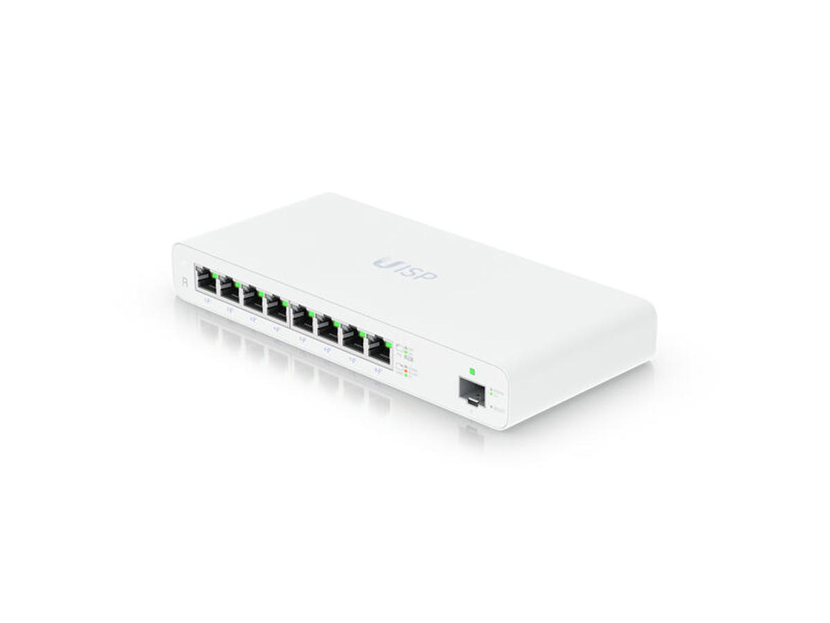 Ideal for wireless ISP (WISP) deployments, the UISP™ Router is a fanless PoE router featuring (8) GbE RJ45 ports and (1) 1G SFP port for an additional fiber uplink option. The UISP Router provides a cost-effective routing solution for WISPs looking to quickly and inexpensively deliver Gigabit wireless speeds to their customers. With its hefty 110W total PoE supply, the UISP Router delivers substantial power to every radio in your service network. The UISP Router is managed with the UISP application, a centralized platform where you can monitor and manage all of your UISP devices.
