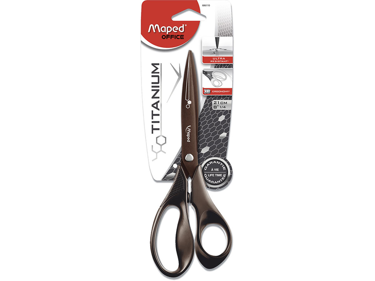 Saks med titanium belægning for pålidelighed og høj ydelse. Titaniumbelagte stålblade gør saksen ekstra modstandsdygtig og forbliver skarp meget længere. 3D-håndtaget er ekstra ergonomisk at bruge. Plastdelene er af 79% genanvendt plast.