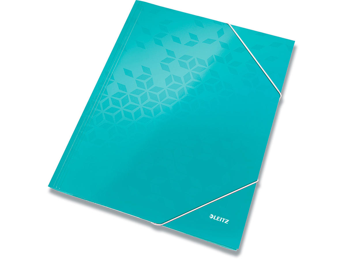 Samlemappe, 3 klapper, 2 elastikker, Metallic isblå, Leitz WOW