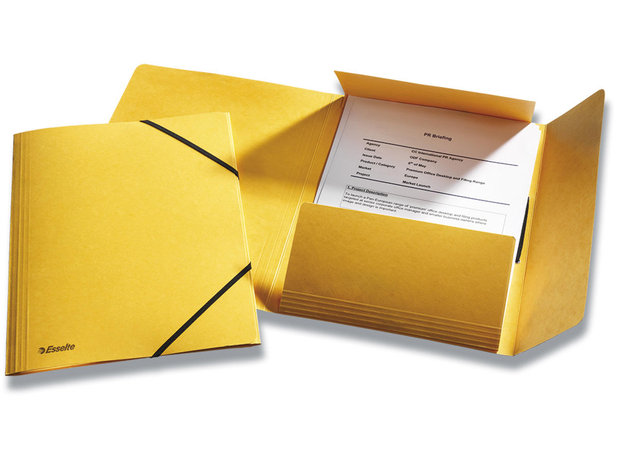 Samlemappe, 3 klapper, 2 elastikker, Gul, Esselte