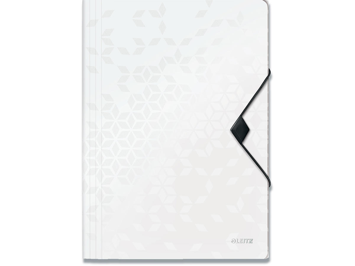 Samlemappe, 3 klapper, 1 elastik, Metallic hvid, Leitz WOW