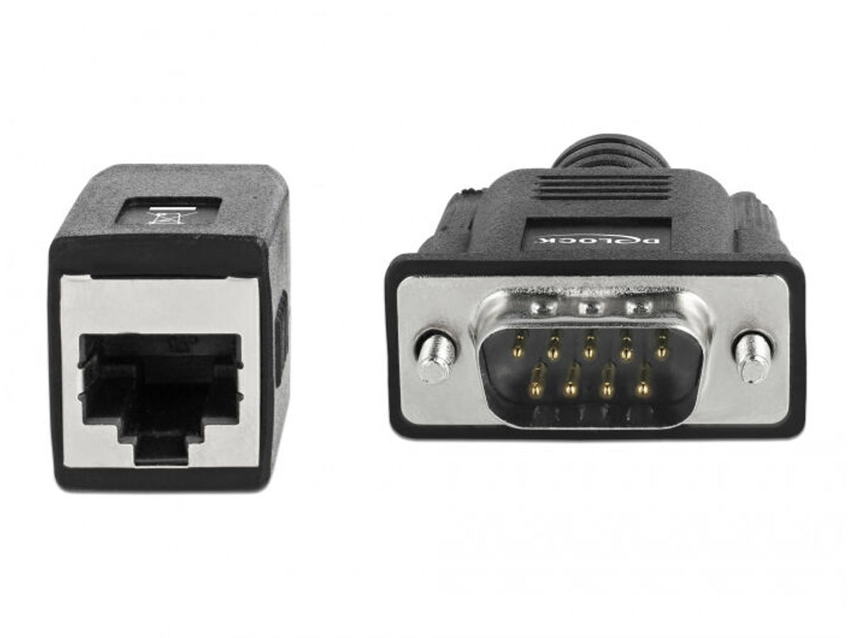 This adapter for cable extension by Delock is suitable for all serial interfaces from DB9 to RJ45. It connects devices such as printers, computers, gateways, POS systems etc. The adapter thus provide a simple solution to transfer the serial data e.g. of RS-232/422/485 interfaces with a Cat.5 cable and within an existing cable infrastructure.