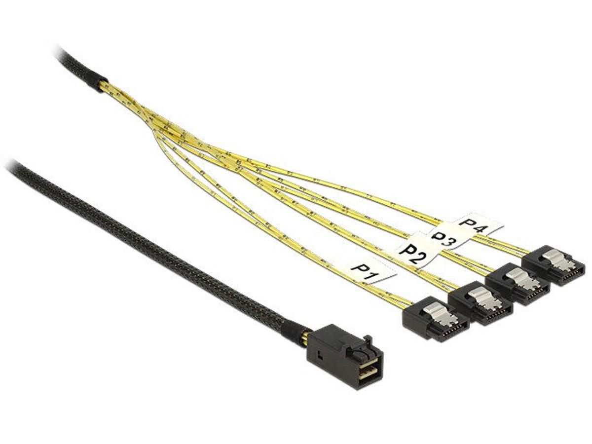 DeLOCK 83393. Kabellængde: 1 m, Stik 1: 1 x Mini SAS HD x 4 SFF 8643, Stik 2: 4 x SATA 7p