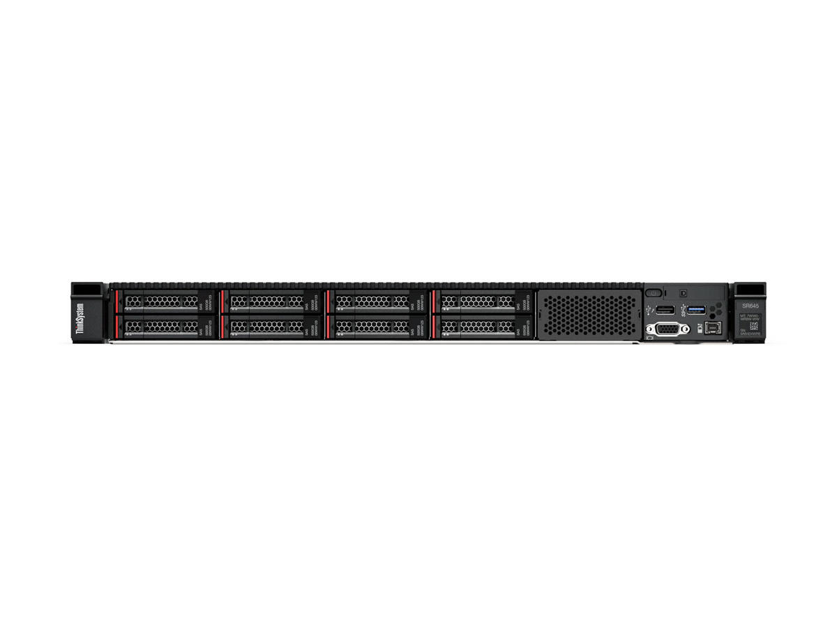 The Lenovo ThinkSystem SR645 is a 2-socket 1U server that features the AMD EPYC 7002 "Rome" and AMD EPYC 7003 "Milan" families of processors. With up to 64 cores per processor and support for the new PCIe 4.0 standard for I/O, the SR645 offers the ultimate in two-socket server performance in a space-saving 1U form factor.