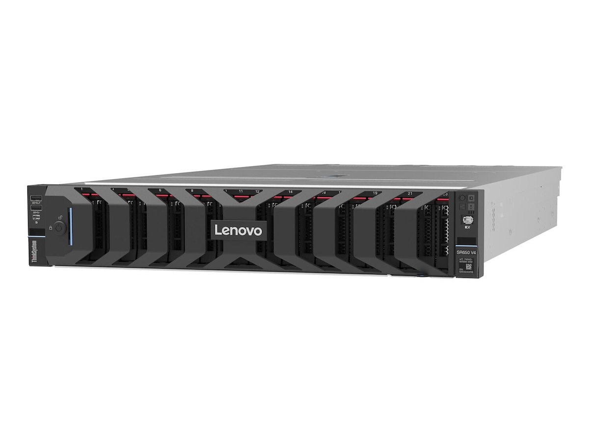 The Lenovo ThinkSystem SR650 V4 is an ideal 2-socket 2U rack server for customers that need industry-leading reliability, management, and security, as well as maximizing performance and flexibility for future growth. With two Intel Xeon 6700-series or 6500-series processors, the SR650 V4 is designed for high density and scale-out workloads in various customer segments.