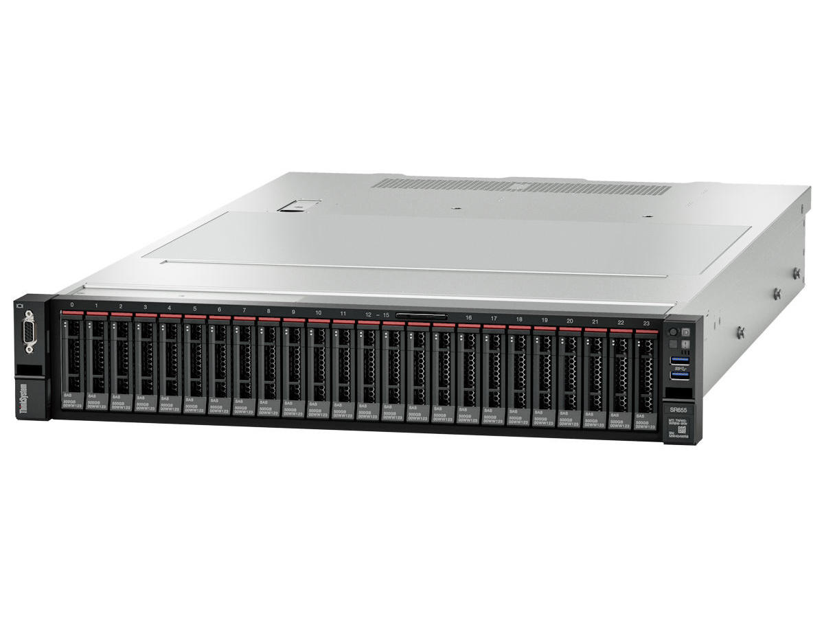 ThinkSystem SR655 is a multi-GPU optimized rack server, with support for up to 6 single-wide GPUs providing 200% more workload acceleration in AI, SDI and VDI instances. Capacity for up to 32x 2.5” low-latency NVMe drives that pairs well with the demands of low-latency, high-bandwidth storage such as clustered SAN solutions and software-defined storage. Eight PCIe Gen4 slots offer 2x faster I/O and support for 16 DIMMs with 2TB of DDR4 memory capacity ensure the SR655 is ideal for high performance database applications.