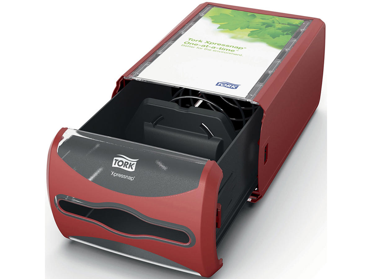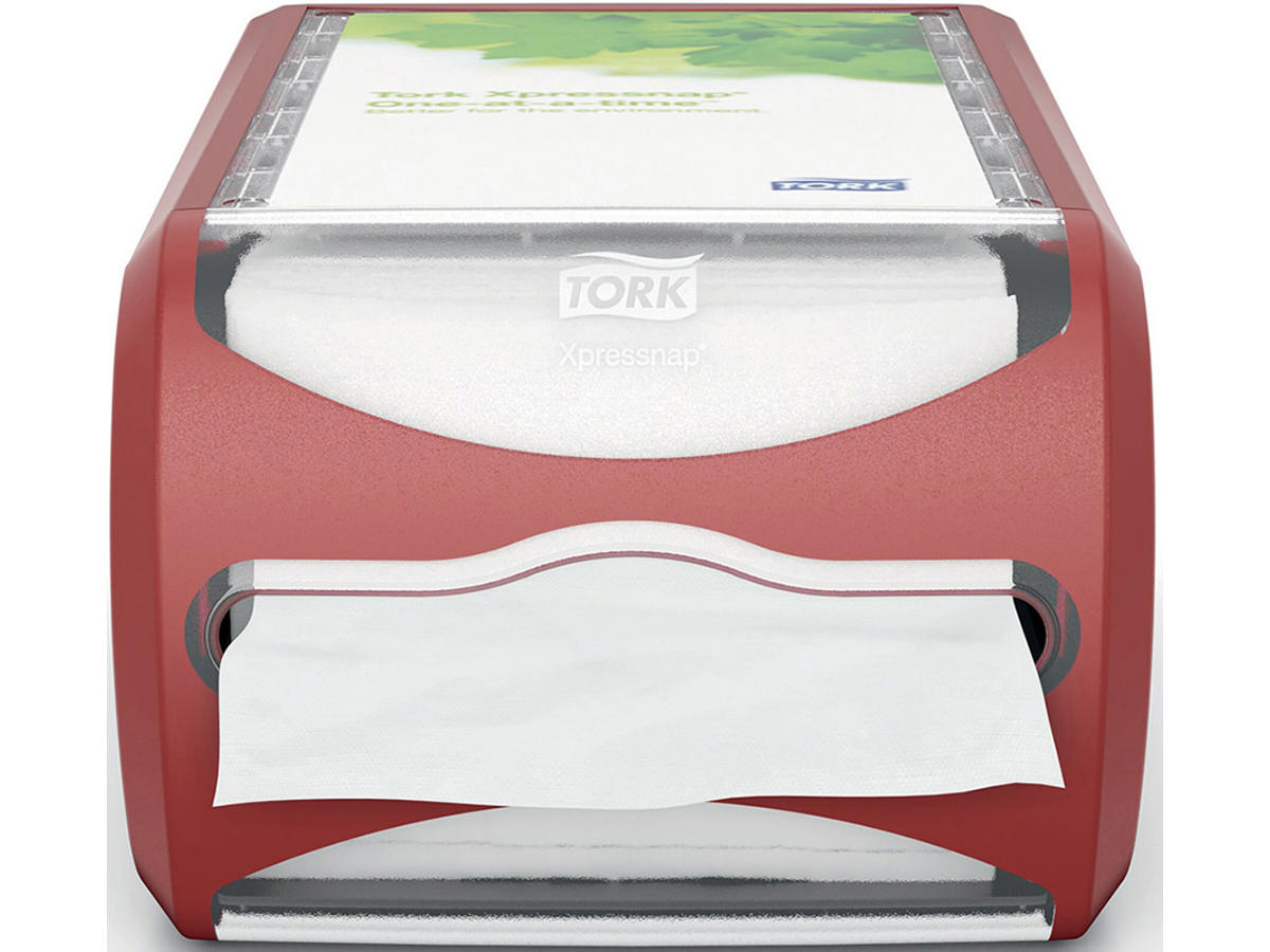 Tork Xpressnap® Servietdispenser til disk er velegnet til restauranter med selvbetjening, hvor servietter skal være tilgængelige på et centralt sted. Den moderne dispenser med en-ad-gangen funktion forbedrer hygiejnen og reducerer servietforbruget med mindst 43% sammenlignet med traditionelle servietdispensere.