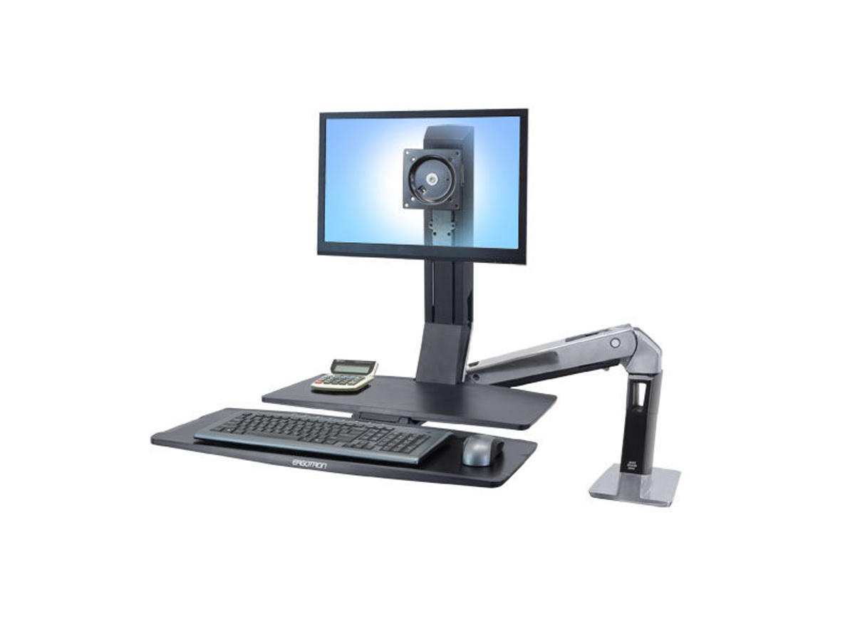 - On-demand sit-stand workstation—improve your energy and productivity by standing or sitting as you work, and then switch positions whenever you choose. Standing a little more each day burns extra calories, tones muscles, improves posture, increases blood flow and ramps up metabolism.