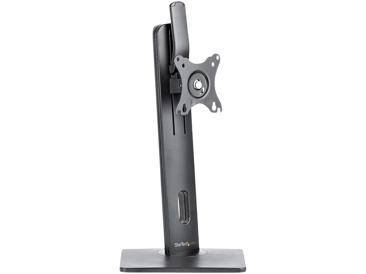 The free-standing monitor stand features a wide range of motion so you can position your monitor to the ideal viewing angle, allowing you to work more comfortably and reduce eye and neck strain. You can easily tilt +/-15°; swivel +/-180°; and make height adjustments to fully adjust your monitor so it can meet your ergonomic needs. With a rotating base, this monitor stand lets you swivel your display a total range of +/- 40°.