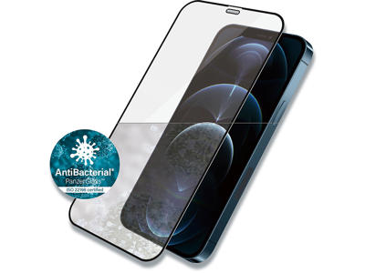 PanzerGlass™ skærmbeskyttelse til iPhone 12 Pro Max i sort med antibakteriel effekt, har de samme features som originalt PanzerGlass™ og vil beskytte din skærm mod ridser og stød.