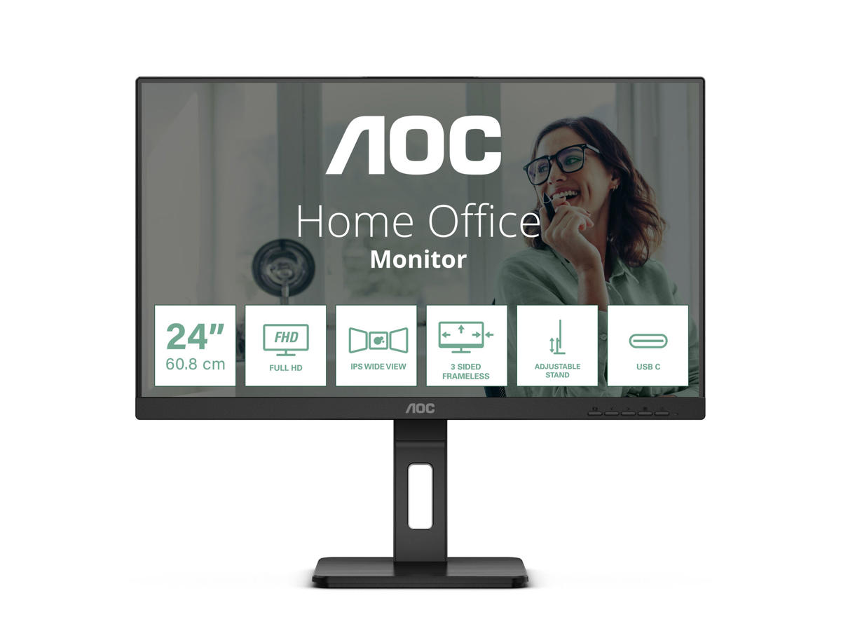 The AOC 24P3CV is a 23.8” flat-screen IPS monitor with an attractive three-sided ultrathin bezel design that helps you get the most out of your flexible work style. Enjoy vivid, realistic picture quality thanks to enhanced Full HD (1920 x 1080) resolution, paired with 300-nit brightness and generous 178/178° wide viewing angles. This model features built-in 2W + 2W speakers to let you enjoy the media whenever you need. Monitor 24P3CV is ready to boost your productivity with USB-C supporting Power Delivery up to 65W, data transfer and DP-alt mode. Connectivity of this monitor is enhanced with USB Hub, RJ-45 & DP-out. Keeping sustainability in mind, an array of environmental certifications including EPA, TCO, and EPEAT complete this monitor.