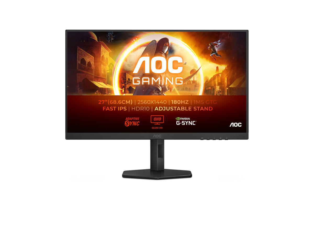 AOC G4 Q27G4XF. Skærm diagonal: 68,6 cm (27"), Skærmopløsning: 2560 x 1440 pixel, HD-type: Quad HD, Skærmteknologi: LED, Responstid: 1 ms, Naturligt aspektforhold: 16:9, Synsvinkel, horisontal: 178°, Synsvinkel, vertikal: 178°. VESA montering, Højdejustering. Produktfarve: Sort, Grå