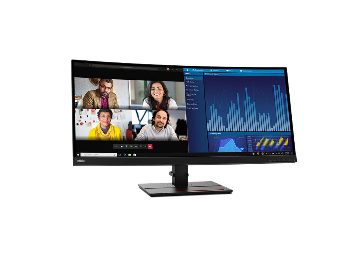 ThinkVision P34w-20 hub monitor upgrades your view with a premium visual experience on a 34,14-inch curved screen with a WQHD 3440 x 1440 resolution for a wide viewing angle In-Plane Switching panel that lets you see all the fine details and vibrant colors from any angle. With the P34w-20 you get true-to life color accuracy, make multi-tasking a breeze with advanced tools for collaboration, and enhance workplace productivity and connectivity with the power of USB Type-C capabilities. Never miss a shade with a 99% sRGB delta E<2 for reliable color accuracy straight out of the box, while Natural Low Blue Light technology reduces harmful blue light emissions to optimize eye comfort without color distortion.