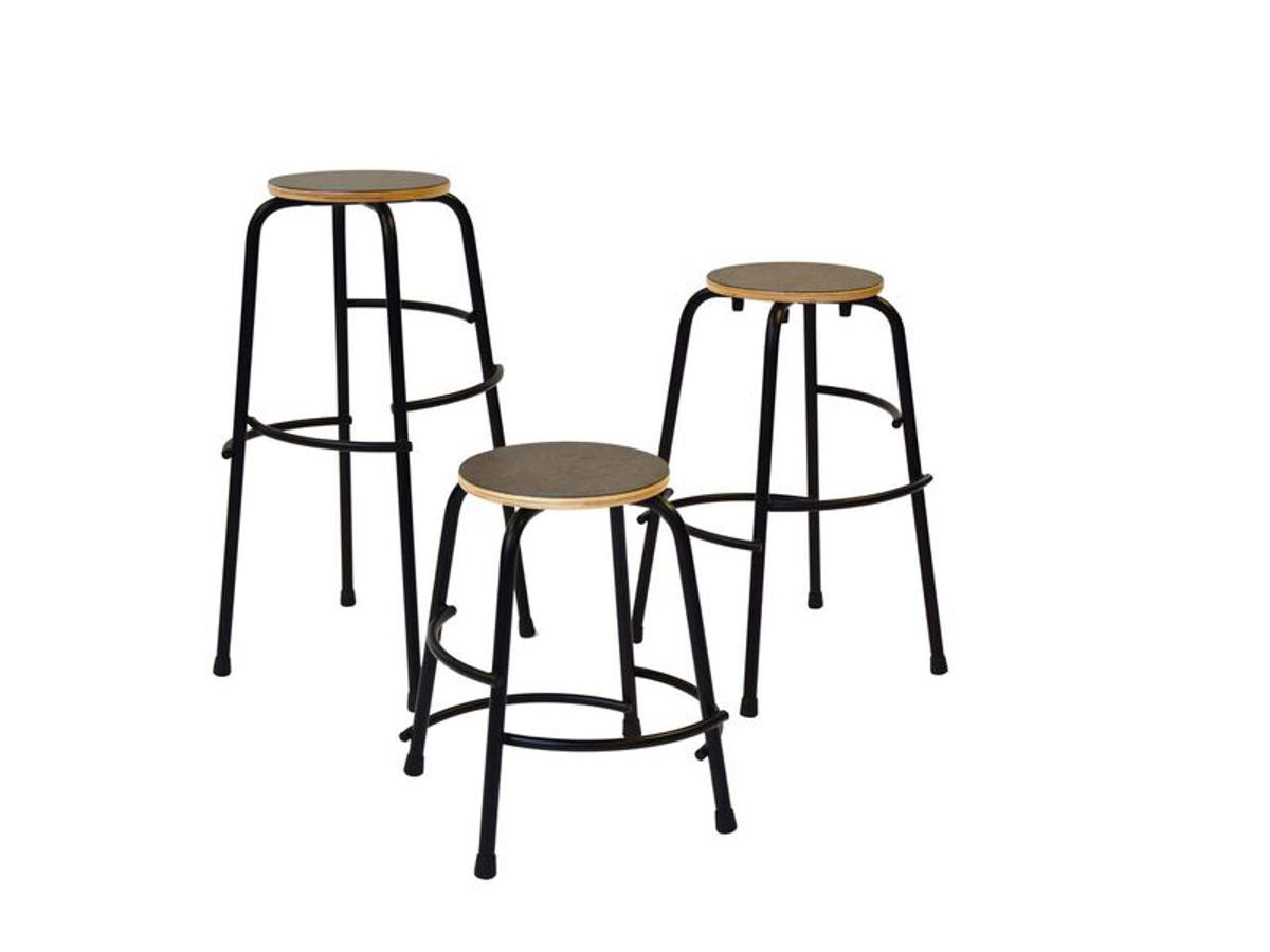 Sort strukturlakeret ben m/fodstøtter. Sæde HPL laminat i grå.