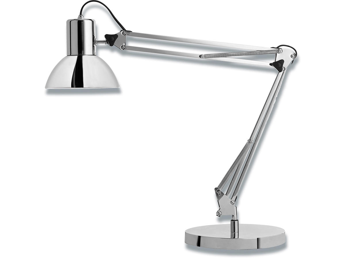 Den traditionelle “arkitekt” bordlampe kommer nu med et trendy moderne finish: krom-belagt! Bordlampen har fjeder-afbalanceret arm, som gør at lampeskærm altid kan holdes parallelt i forhold til dit skrivebord. Dobbelt leddelt arm muliggør bevægelser i alle retninger. God refleksion af lyset takket være lampehovedets indvendige belægning. Lyskilden er en 11W LED pære for E27 sokkel med 30.000 brændetimer – 1000 lumens. Symmetrisk belysning. Leveres med bordfod og klemme.Diameter på lampehoved: 17,2 cm Højde på lampehovedet: 17 cm Længde på armen: 80 cm
