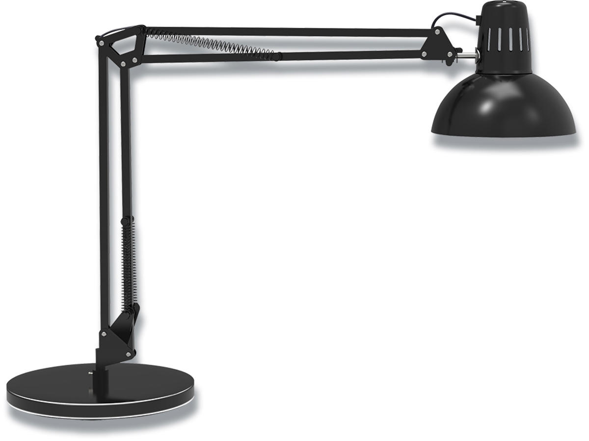 Denne sorte skrivebordslampe / arkitektlampe med fod har et professionelt og klassisk design, der passer godt til kontormiljøer. Lampen er perfekt til at belyse selv de større skriveborde på kontoret. LED pære medfølger og kan nemt udskiftes, f.eks. med en Smart Home pære. Fatning størrelse E27. Lampen er fremstillet i sort metal med en justerbar arm og et roterbart lampehoved. Ekstra vægt i lampefoden sikrer, at lampen står stabilt på skrivebordet. Tænd/sluk-knappen er er placeret på ledningen. Den samme lampe findes også med en klemme i stedet for lampefod. Den finder du HER.
