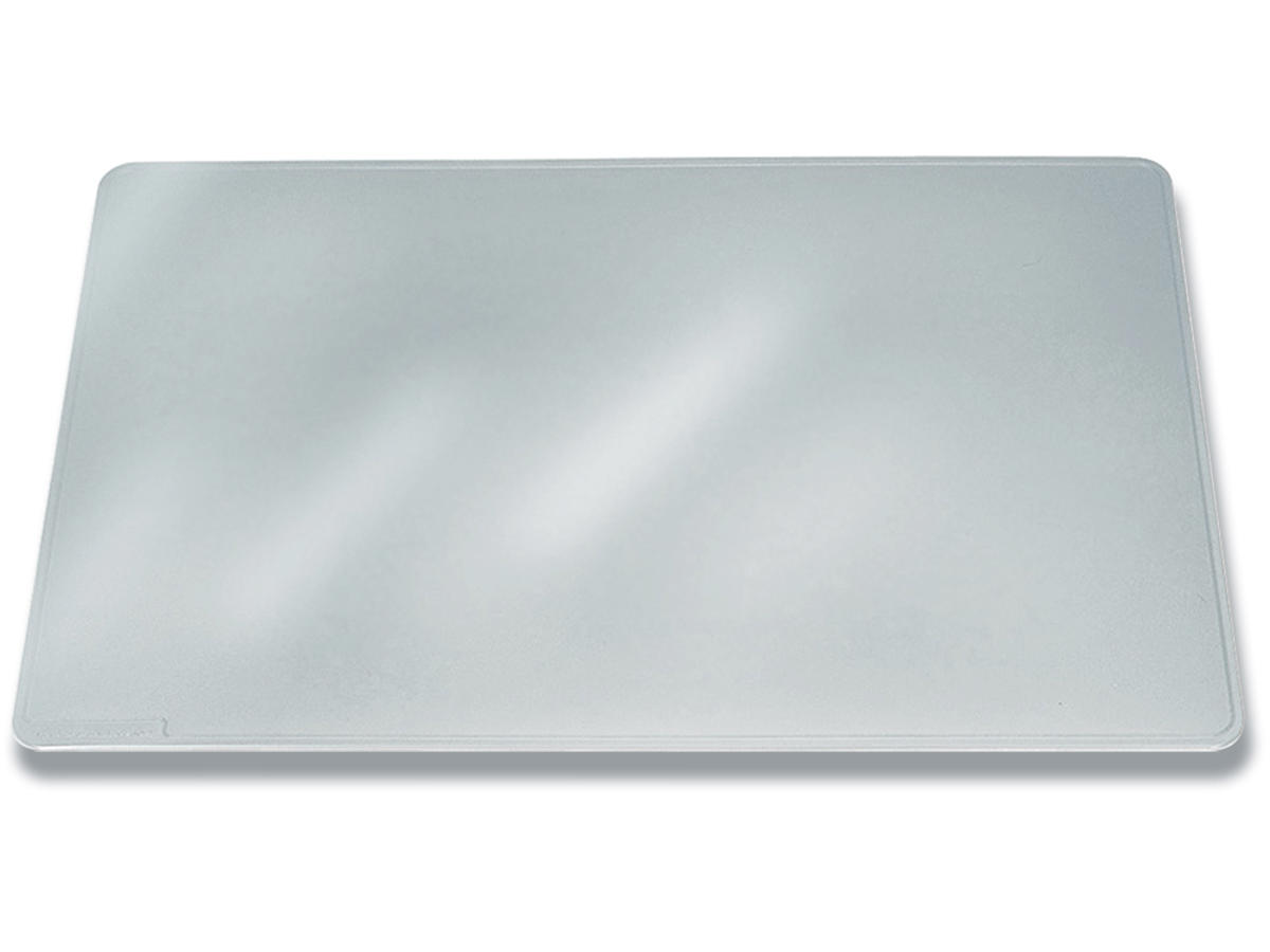 Skrivevenlig mat/transparent plast med skridsikker beskyttelse på undersiden. Beskytter men skjuler ikke skrivebordets overflade. Mål: 65 x 50 cm (BxH)