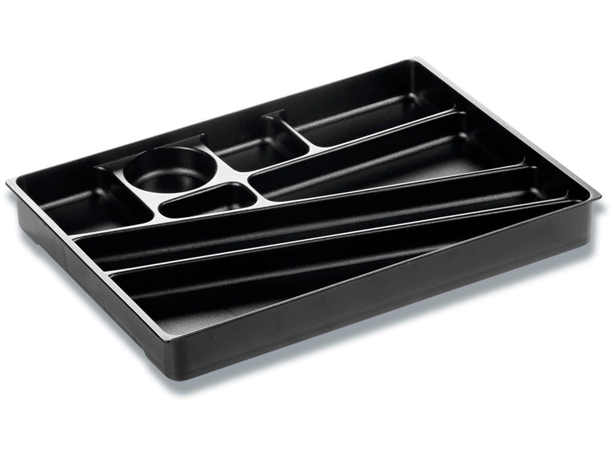 Bakke med otte rum med plads til penne, clips, gummibånd m v. Passer til anvendelse i skuffeboks IDEALBOX, IDEALBOX PLUS og VARICOLOR®. Af polystyren plast (min. 80% genbrugsmateriale). Produktet er miljøcertificeret af miljømærket blå Angel. Mål: 240x36x340mm (BxHxD).