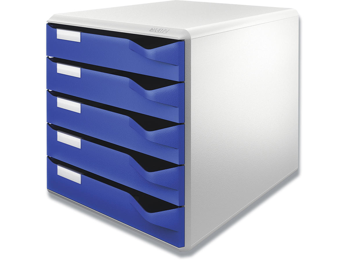 Skuffekabinet, 5 skuffer, Blå-lysegrå, A4, Leitz Post og Form A4