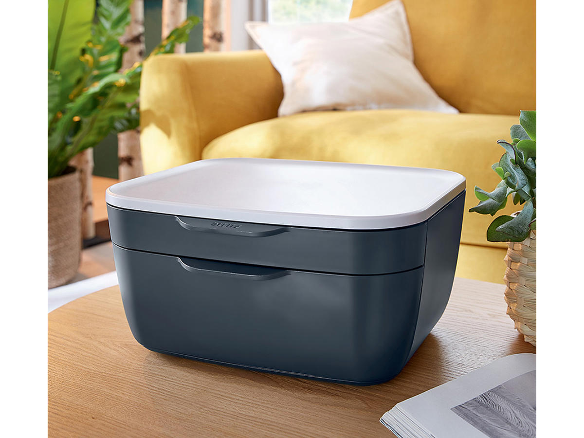 Føl dig hjemme med Cosy serien fra Leitz uanset hvor din arbejdsdag tager dig hen. Med det minimalistiske design og de indbydende matte farver giver du stil og farve til dit arbejdsområde. Cosy skuffekabinettet er ideelt til at opbevare alle dine dag til dag fornødenheder som penne, kabler, notesbøger. Dette premium kvalitets skuffekabinet er et perfekt tillæg til hjemmet eller kontoret for at sikre, at du forbliver afslappet og organiseret hele dagen.