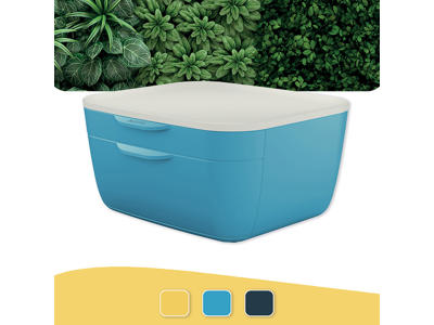 Føl dig hjemme med Cosy serien fra Leitz uanset hvor din arbejdsdag tager dig hen. Med det minimalistiske design og de indbydende matte farver giver du stil og farve til dit arbejdsområde. Cosy skuffekabinettet er ideelt til at opbevare alle dine dag til dag fornødenheder som penne, kabler, notesbøger. Dette premium kvalitets skuffekabinet er et perfekt tillæg til hjemmet eller kontoret for at sikre, at du forbliver afslappet og organiseret hele dagen.
