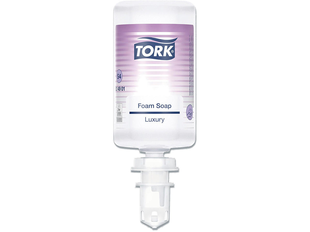 Giv gæsterne lidt ekstra luksus og en behagelig brugeroplevelse med Tork Luksus Skumsæbe. En luksuriøs formulering med naturlig magnolieekstrakt og fugtgivende, nærende ingredienser, der giver en fyldig, duftende sæbeskum. Den passer i Tork Håndhygiejnedispenser, som er certificeret nem at betjene og sikrer god håndhygiejne til alle brugere.