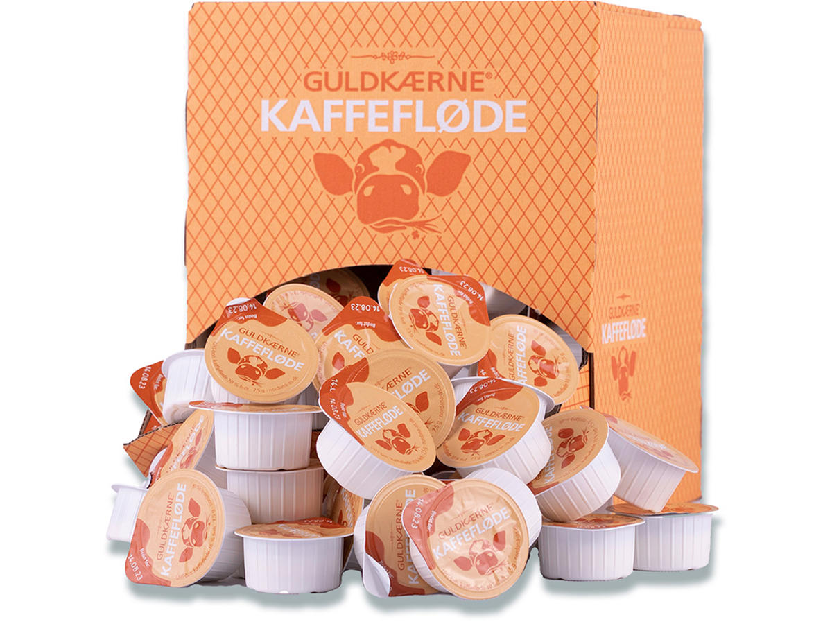 Kaffefløde pakket i smarte små bægre a 7,5 ml. Det gør kaffefløde brikkerne yderst praktiske at have liggende i mødelokalet, kantinen, eller hvor der skal tilbydes fløde til kaffen. Det er nemt, enkelt og lækkert for dine gæster, når der skal fløde i kaffen.