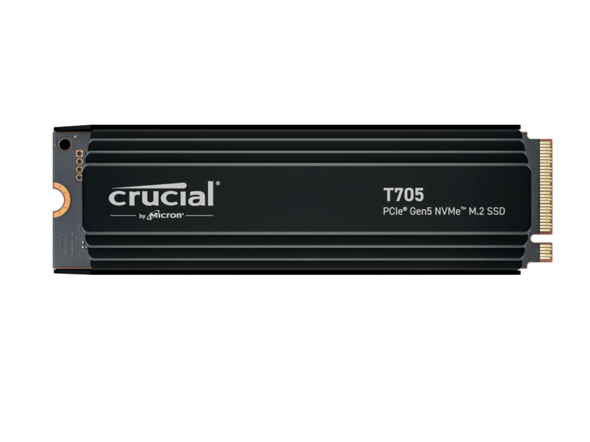 • Hold on tight — the Crucial® T705 Gen5 NVMe® SSD is taking Gen5 performance to the next level. Fuel your gaming, create at the speed of ideas, and power through AI applications with ease with this fully optimized Gen5 masterpiece that works with your motherboard heatsink.
