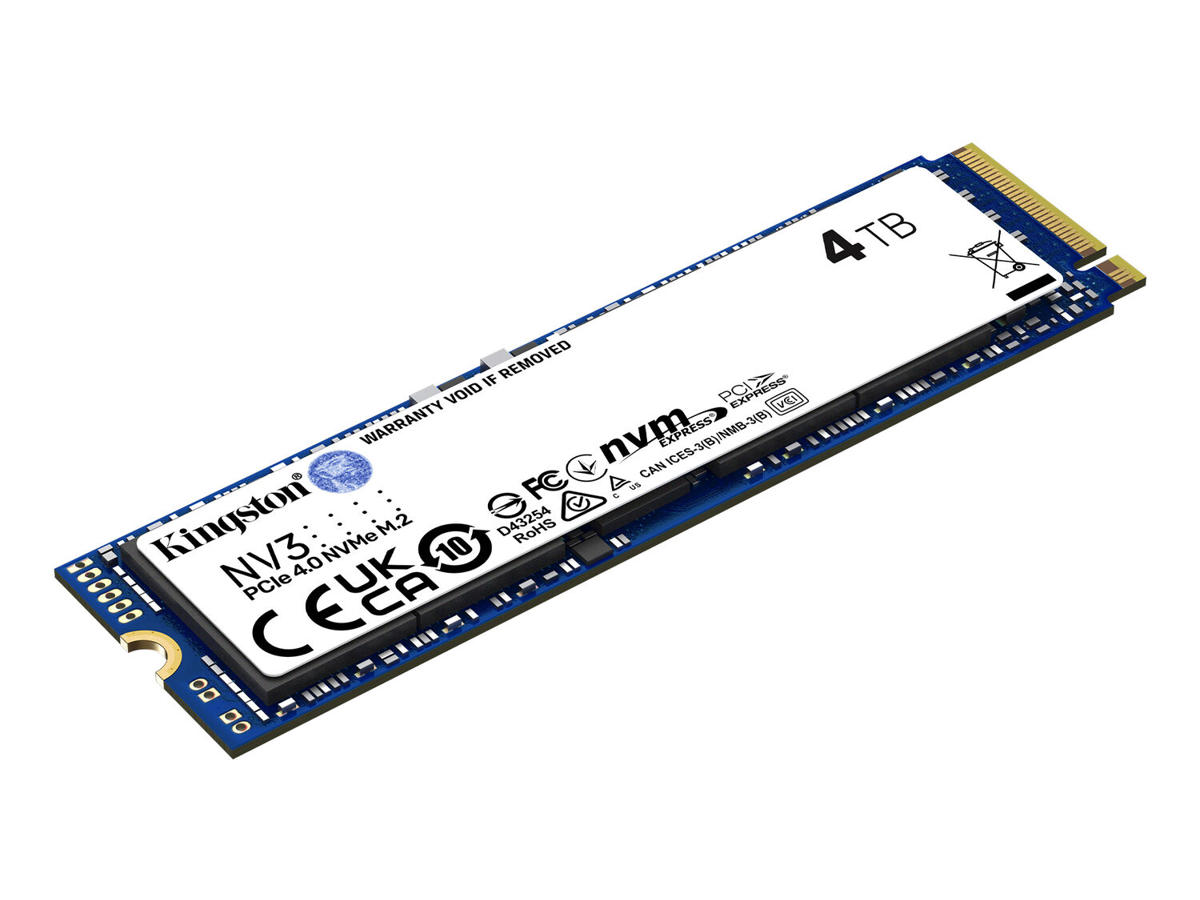 Kingstons NV3 PCIe 4.0 NVMe SSD'er er næste generations lagerløsninger, som er drevet af en Gen 4x4 NVMe-controller, der leverer læse-/skrivehastigheder på op til 6.000/5.000 MB/s*. De fås både i kompakte størrelser med enkeltsidet M.2 2280 (22 x 80 mm) og 2230 (22 x 30 mm) til udvidelse af lagring i systemer med lille formfaktor, f.eks. bærbare computere og håndholdte spilkonsoller*****. Det tilbyder lavt strømforbrug og reduceret varme, hvilket optimerer ydeevnen i dit system uden at gå på kompromis med værdien. Fås i kapaciteter fra 500 GB til 4 TB** og giver dig al den plads, som du har brug for til programmer, dokumenter, fotos videoer, spil og meget mere.