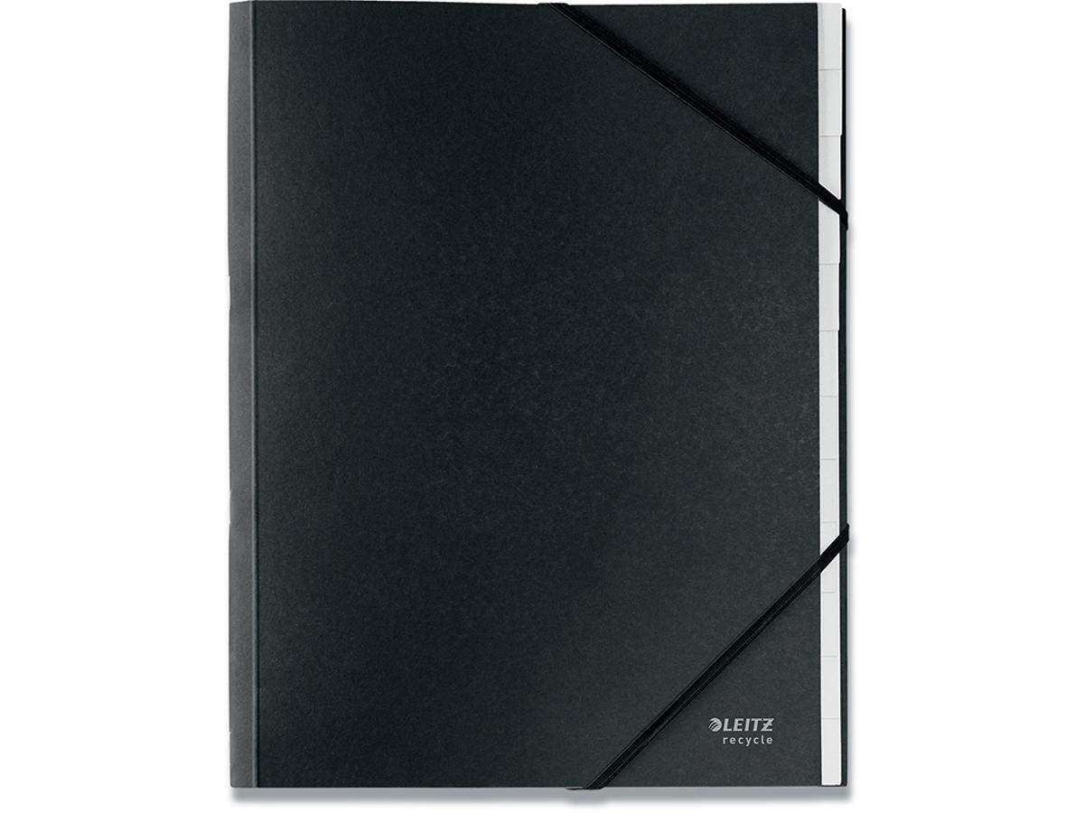 Sorteringsmappe, 12 faner, Sort, 2 elastikker, Leitz Recycle