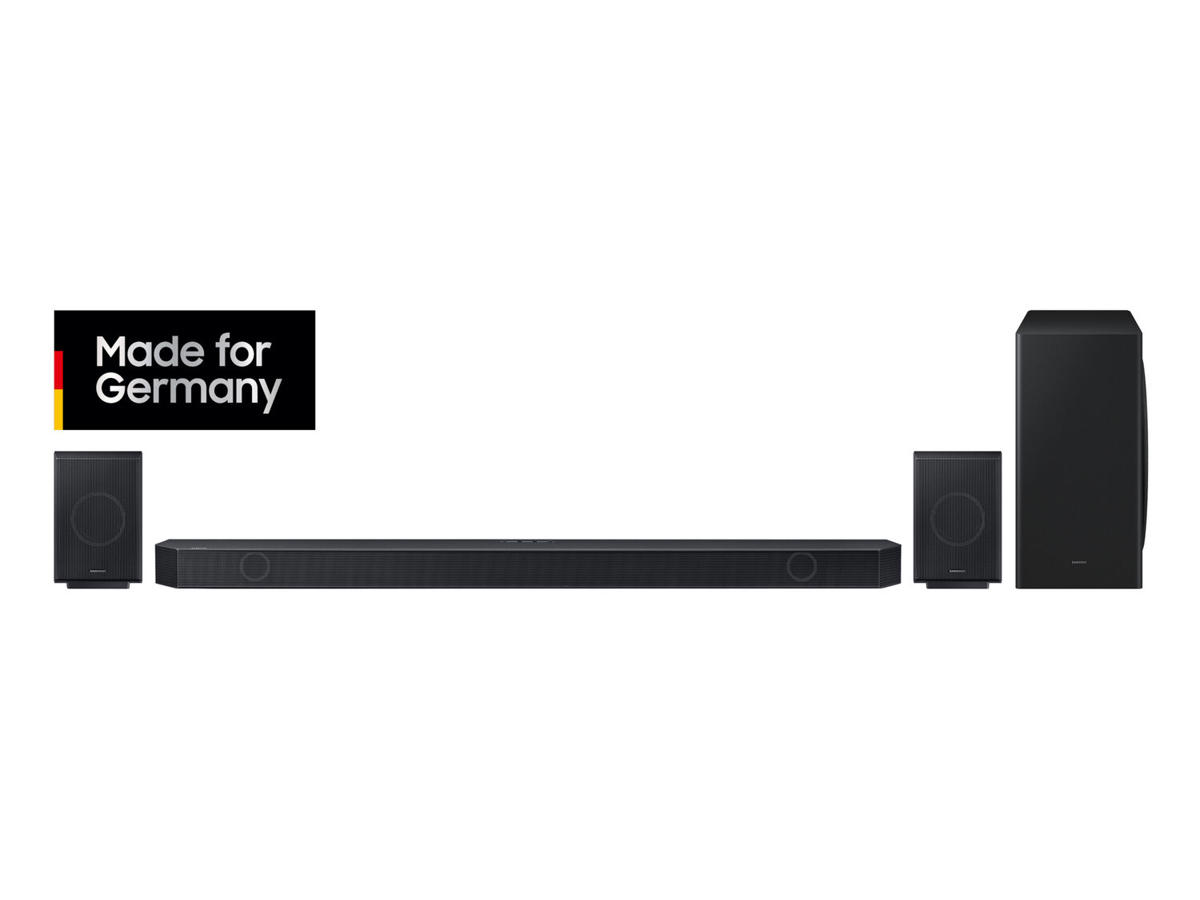 Samsung HW-Q935GD. Lyd-output kanaler: 9.1.4 kanaler, Udgangseffekt (RMS): 540 W, Lyddekodere: DTS:X, Dolby Atmos, Dolby TrueHD, High Definition Audio (HD Audio). Subwoofer RMS-effekt: 160 W. Produktfarve: Sort, HDR-teknologi (High Dynamic Range): High Dynamic Range 10+ (HDR10 Plus), High Dynamic Range 10+ Adaptive (HDR10 Plus Adaptive), Understøttede lydformater: AAC, AIFF, ALAC, FLAC, LPCM, MP3, OGG, PCM, WAV, WMA. Forbindelsesteknologi: Trådløs, Wi-Fi-frekvens: 5 GHz. Soundbar strømforbrug: 42 W, Strømforbrug (standby): 0,5 W