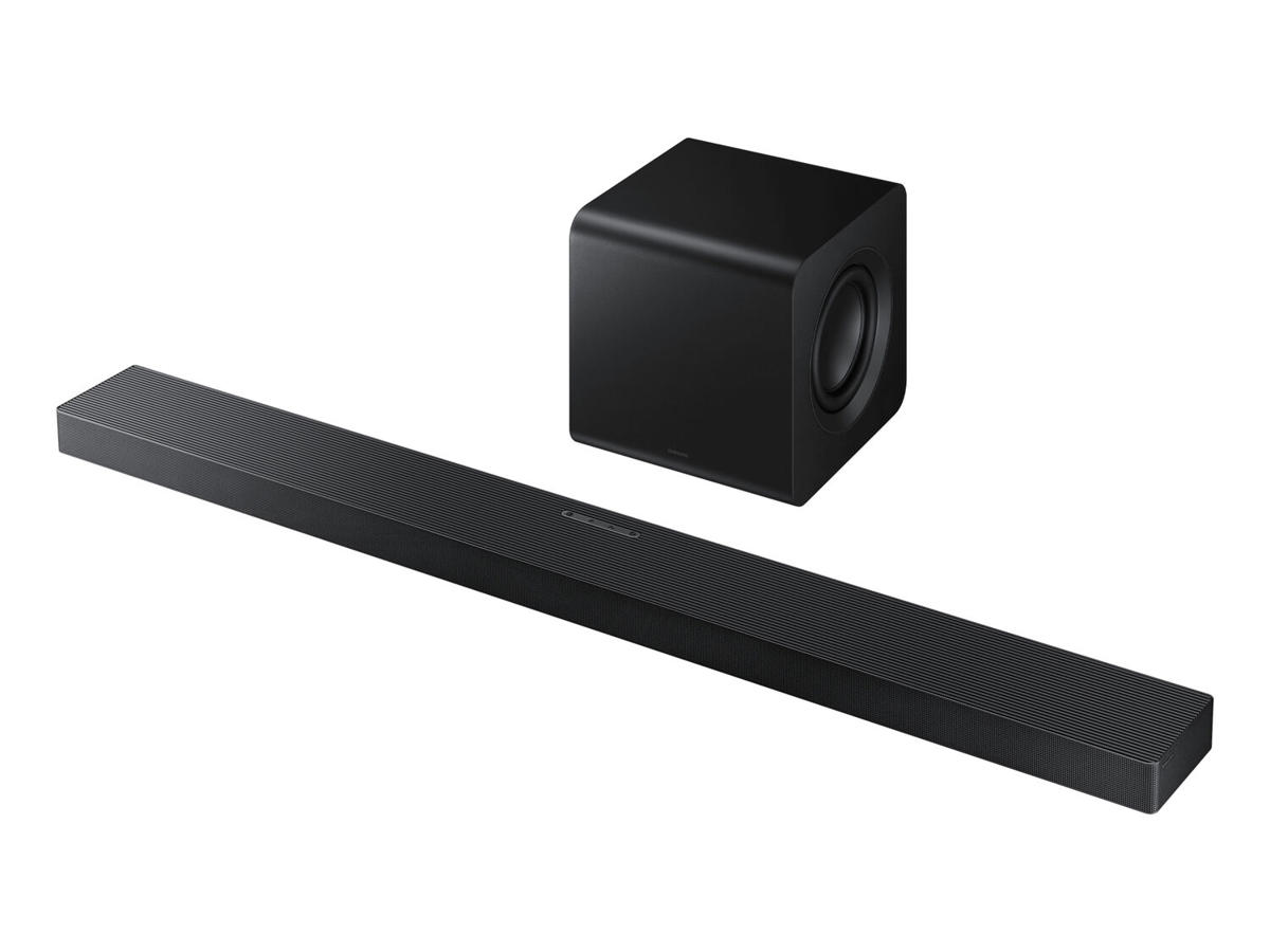 Samsung Q-series HW-QS710F. Lyd-output kanaler: 3.1.2 kanaler, Udgangseffekt (RMS): 38 W, Lyddekodere: Dolby Atmos, Dolby Digital 5.1, Dolby Digital Plus, Dolby TrueHD. Subwoofer type: Aktiv subwoofer, Subwoofer forbindelse: Trådløs. Produktfarve: Sort, HDR-teknologi (High Dynamic Range): HDR 10+, Understøttede lydformater: LPCM. Forbindelsesteknologi: Kabel & trådløs. Soundbar strømforbrug: 28 W, Subwoofer strømforbrug: 38 W, Strømforbrug (standby): 0,5 W
