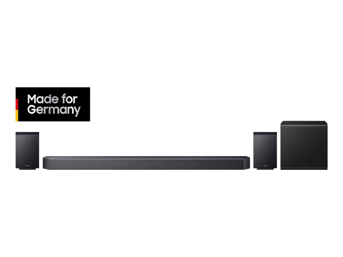 Samsung Q-series HW-Q935GF. Lyd-output kanaler: 9.1.4 kanaler, Lyddekodere: DTS Digital Surround, DTS:X, Dolby Atmos, Dolby Digital, Dolby TrueHD, Equalizer, funktioner: Game Pro. Subwoofer forbindelse: Trådløs, Subwoofer placering: Særskilt. Produktfarve: Sort, Titanium, Farvenavn: Titanium Black, HDR-teknologi (High Dynamic Range): High Dynamic Range 10+ (HDR10 Plus). Forbindelsesteknologi: Kabel & trådløs. Soundbar strømforbrug: 42 W, Subwoofer strømforbrug: 26 W, Strømforbrug (standby): 0,5 W