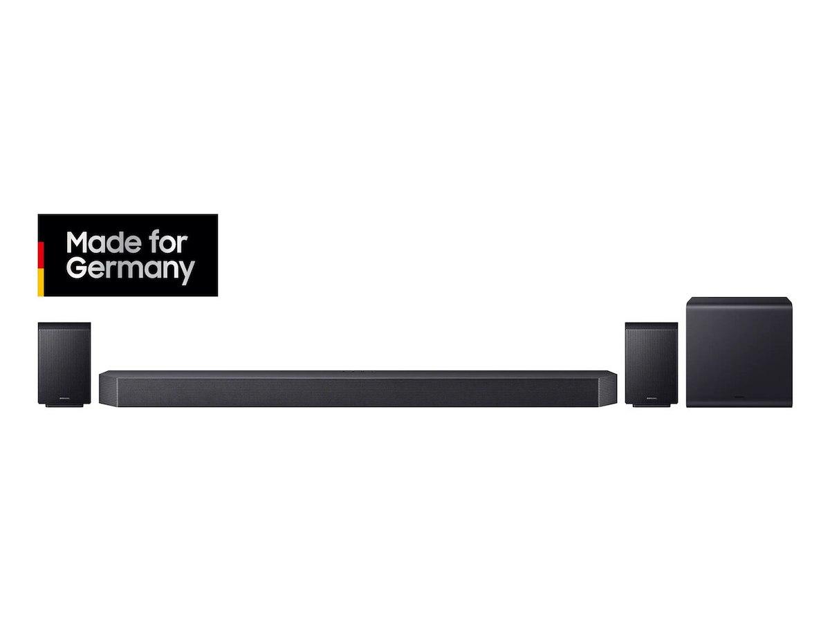 Samsung Q-series HW-Q995GF. Lyd-output kanaler: 11.1.4 kanaler, Lyddekodere: DTS:X, Dolby TrueHD, Dolby Atmos, DTS Digital Surround, Dolby Digital, Equalizer, funktioner: Game Pro. Subwoofer forbindelse: Trådløs, Subwoofer placering: Særskilt. Produktfarve: Titanium, Sort, Farvenavn: Titanium Black, HDR-teknologi (High Dynamic Range): High Dynamic Range 10+ (HDR10 Plus). Forbindelsesteknologi: Kabel & trådløs. Soundbar strømforbrug: 41 W, Subwoofer strømforbrug: 48 W, Strømforbrug (standby): 0,5 W