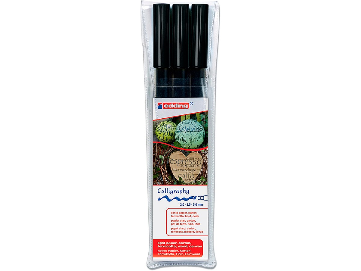 Fiberpen med kalligrafi spids. Pigmenteret, meget lysægte, vandbaseret blæk. Vandfast på næsten alle overflader.