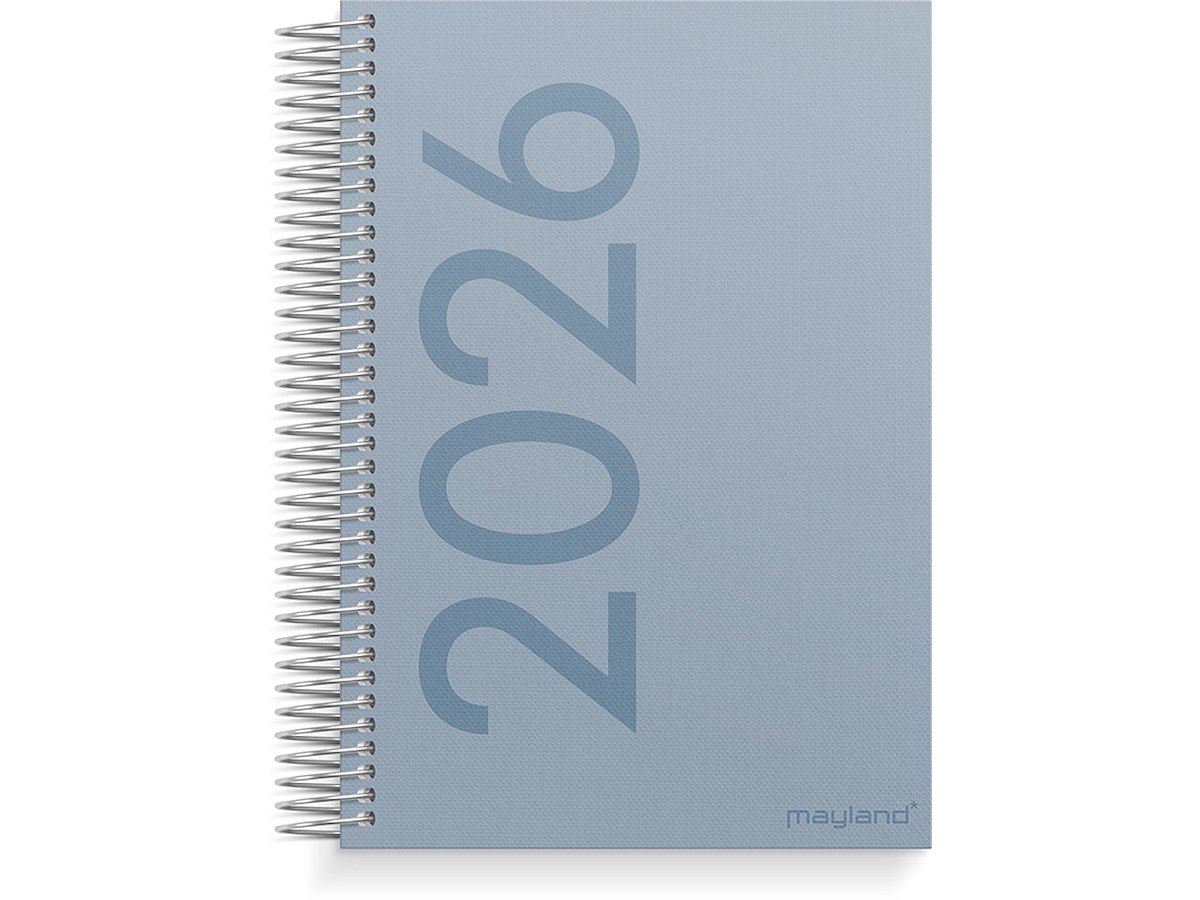 Dagkalender med en farvet forside. Kalenderen er spiralbundet med et omslag i tekstilpræg, hvilket giver kalenderen et flot og enkelt udseende. Kalenderen er inddelt med en dag pr. side og indeholder et timeopdelt kalenderskema fra kl. 8-18 i moderne layout, så du nemt kan danne dig et overblik over dagens planer og aftaler. Dertil finder du en tidslinje og månedsoversigt nederst på hvert opslag, en udfoldelig årsoversigt, masser af praktisk information, stickerark samt en lomme til løse papirer bagerst i kalenderen.